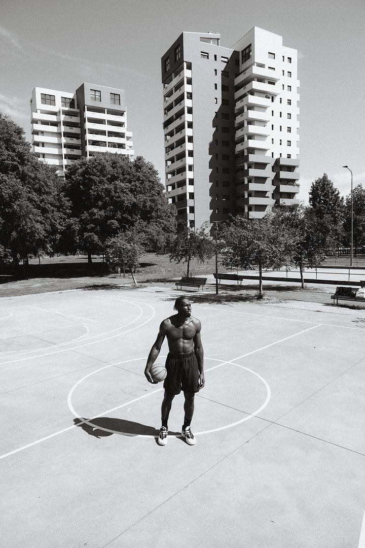 Shot by Stefano Ponzi during summer days in Milan and at a Bertram’s game in Tortona, the firsthand experience of Paul Biligha is another editorial exploration of Overseas into the athlete mindsets, cultural crossovers and creative interpretations of basketball.